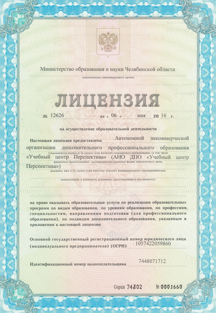 - Лицензия на осуществление образовательной деятельности №12626 от 16 мая 2016г.