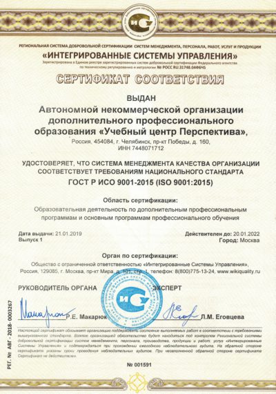 - Сертификат менеджмента качества ISO 9001:2015.